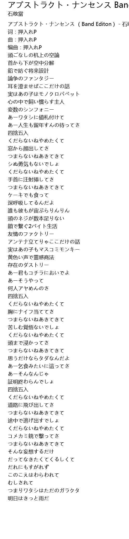 | [00:00.00] | アブストラクト・ナンセンス (Band Editon) - 石敢當 |