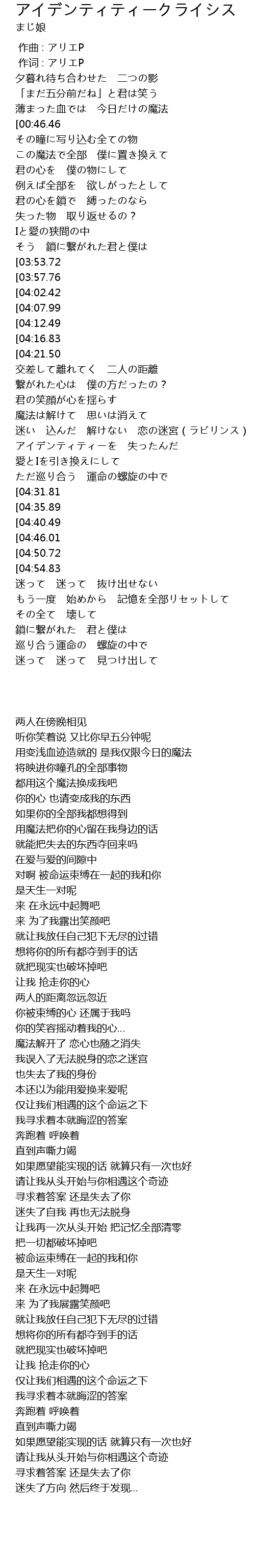 | [02:22.81] | アイデンティティーを 失ったんだ |