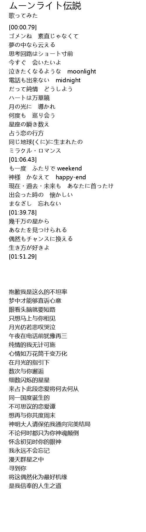 | [00:32.97] | 泣きたくなるような moonlight |