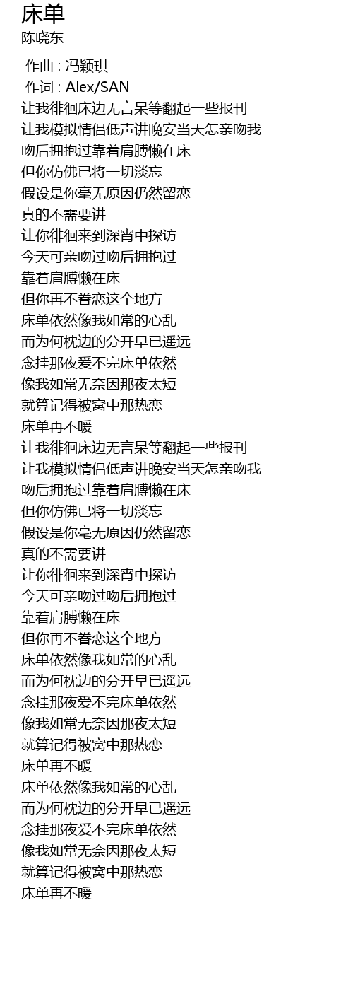| [03:25.980] | 床单依然像我如常的心乱 |