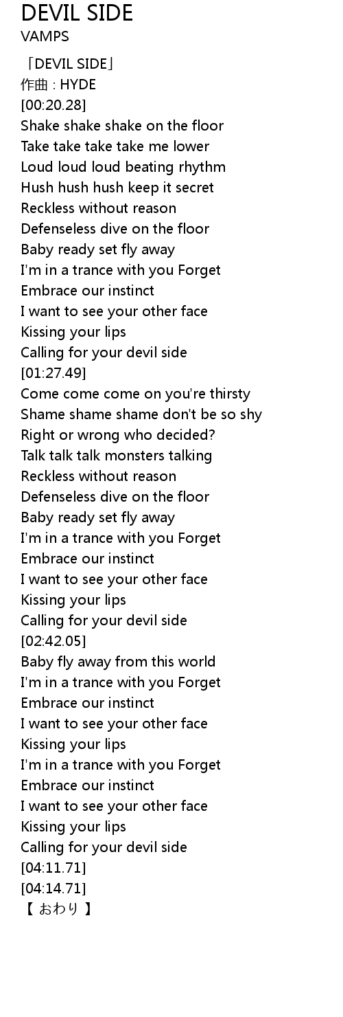 | [01:41.37] | Shame shame shame don' t be so shy |