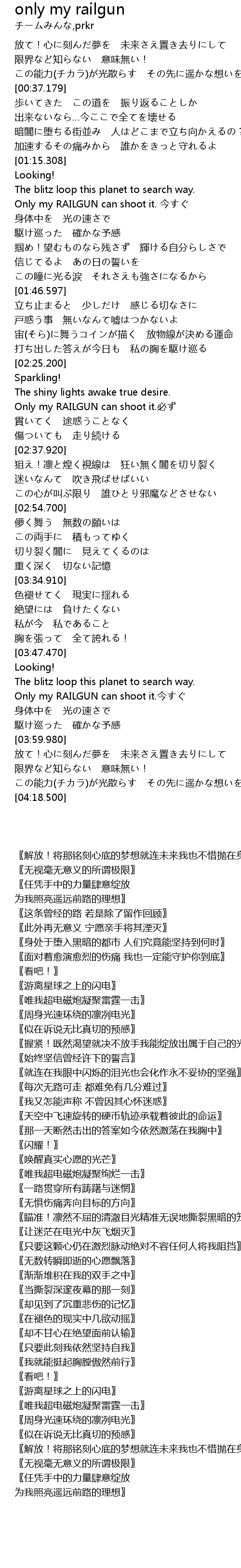 | [02:29.0] | Only my RAILGUN can shoot it.必ず |