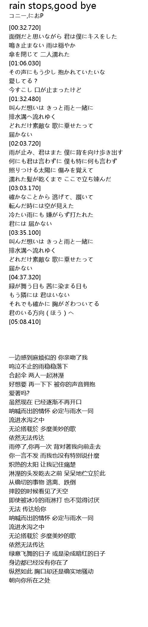 | [01:33.200] | 叫んだ想いは きっと雨と一緒に |