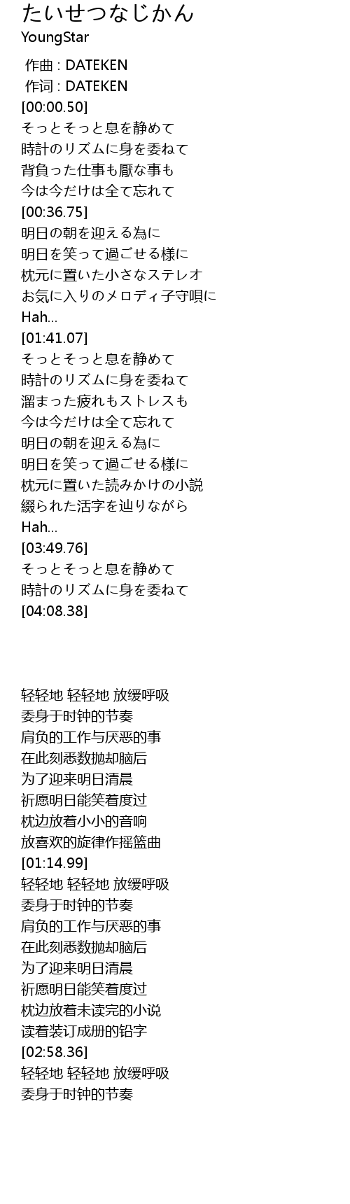 | [04:00.70] | 時計のリズムに身を委ねて |