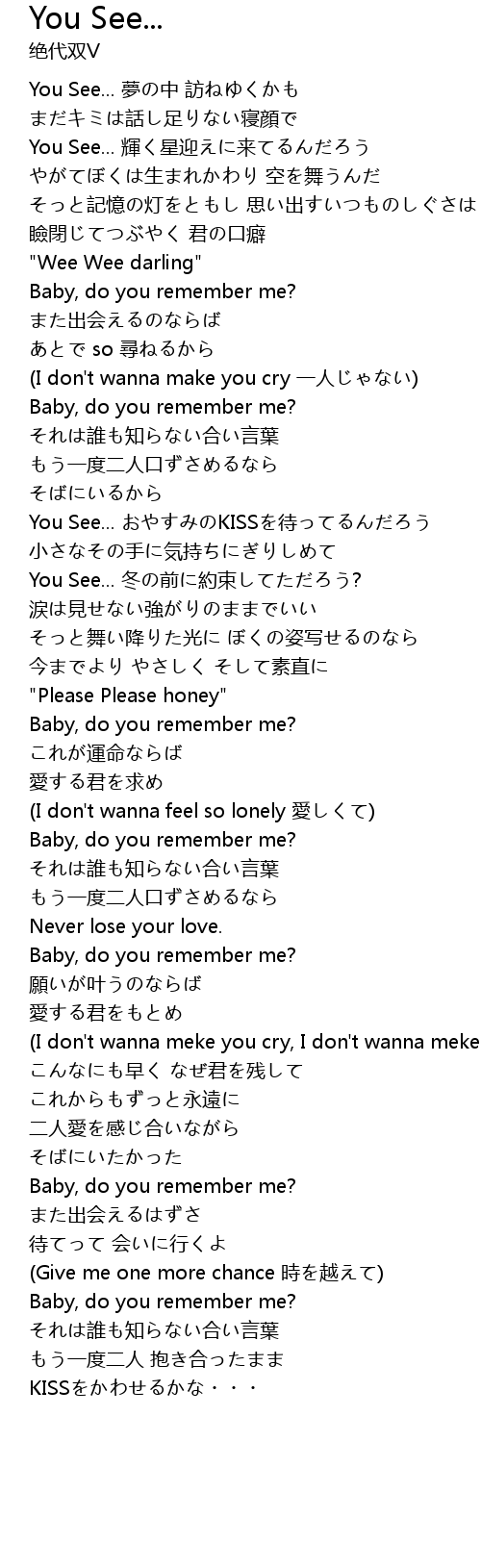 | (I don't wanna meke you cry, I don't wanna meke you cry) | |