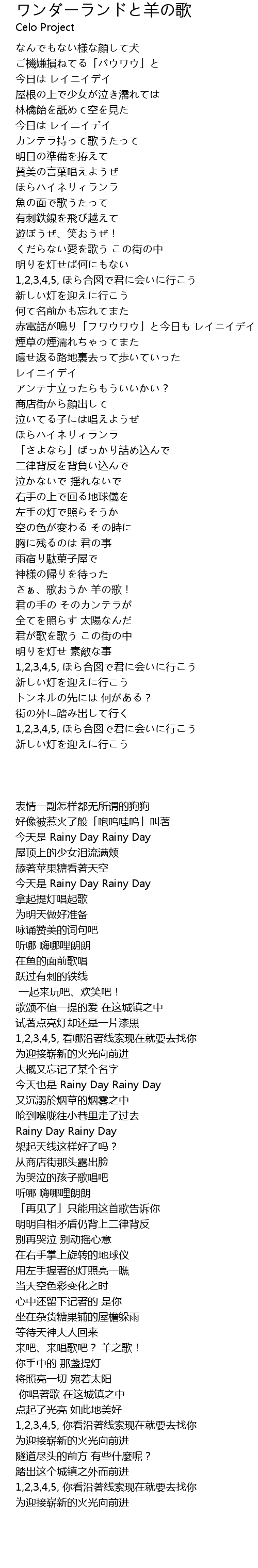| Song | ワンダーランドと羊の歌 |