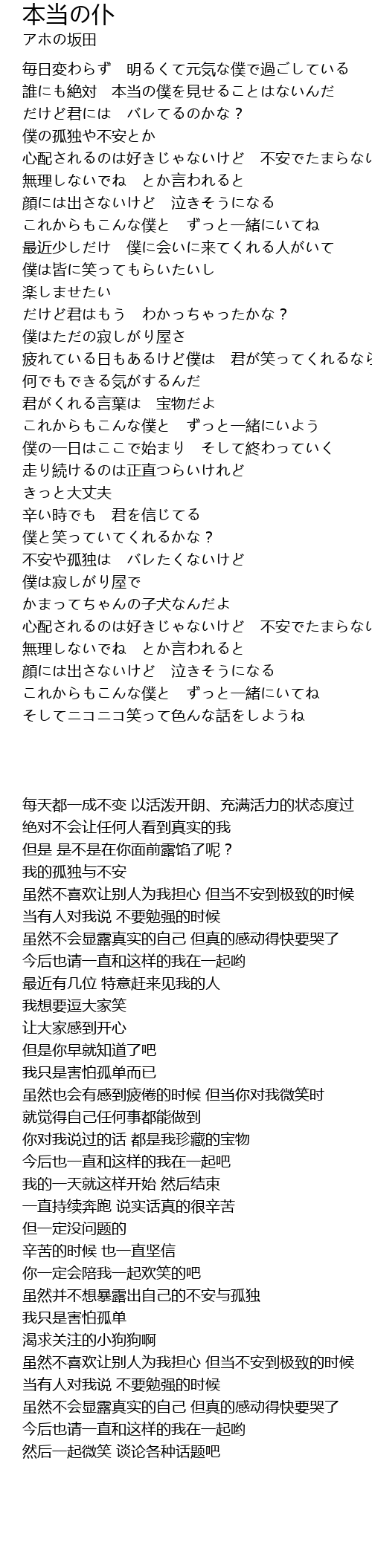 | [00:32.28] | 毎日変わらず 明るくて元気な僕で過ごしている |