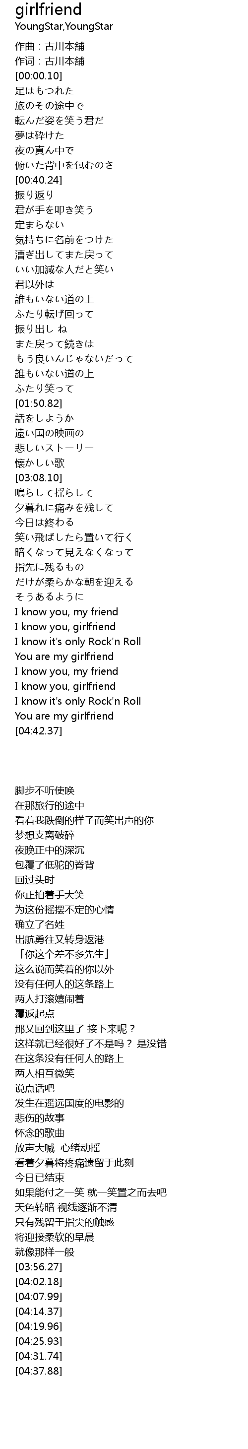 | [04:02.18] | I know you, girlfriend |