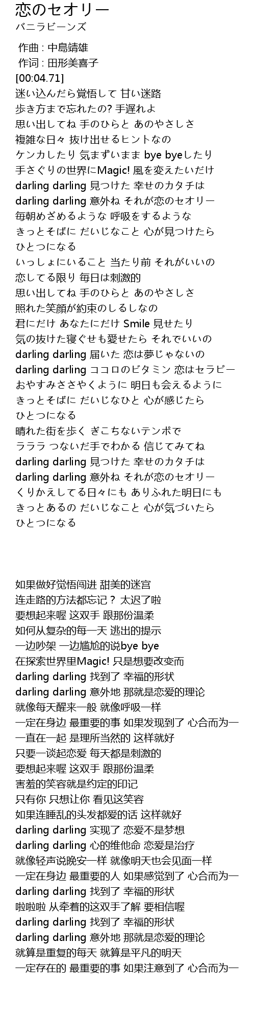 | [03:18.56] | darling darling 意外ね それが恋のセオリー |
