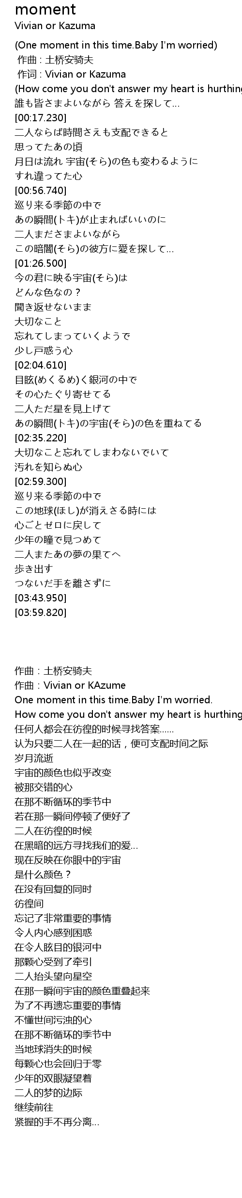 | [00:00.130] | 作词 : Vivian or Kazuma |