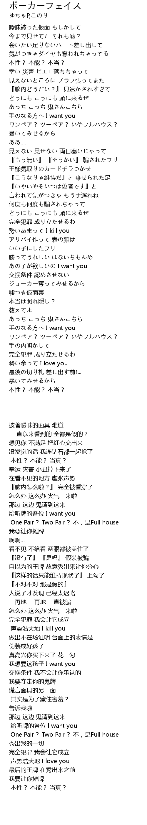 | [02:52.12] | ワンペア? ツーペア? いやフルハウス? |