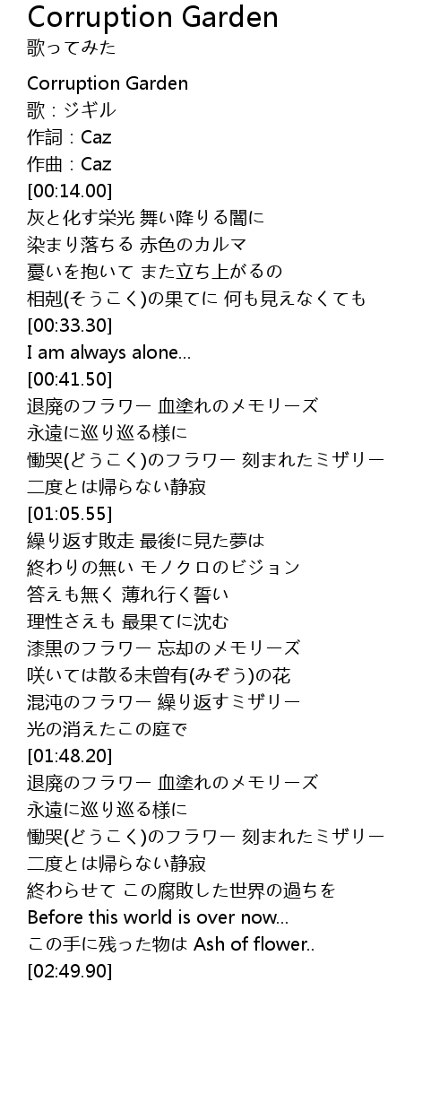 | [00:49.20] | 退廃のフラワー 血塗れのメモリーズ |