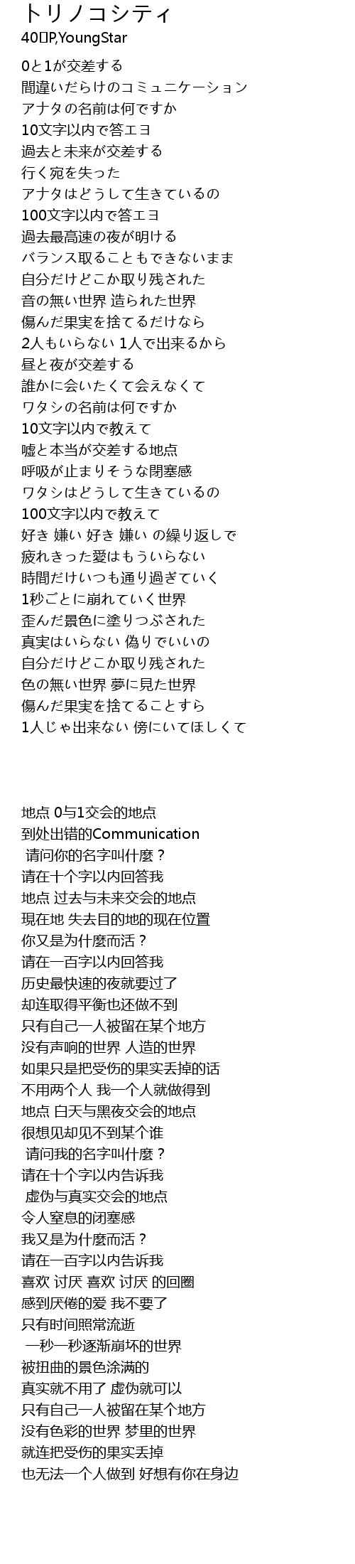 | [01:46.95] | 嘘と本当が交差する地点 |