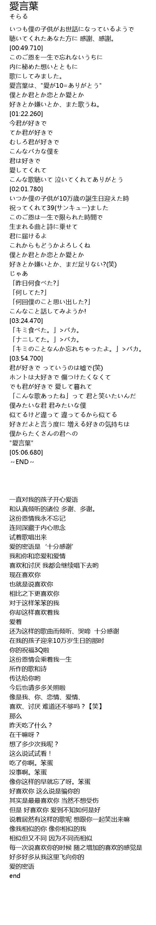 | [01:01.710] | 愛言葉は、"愛が10=ありがとう" |