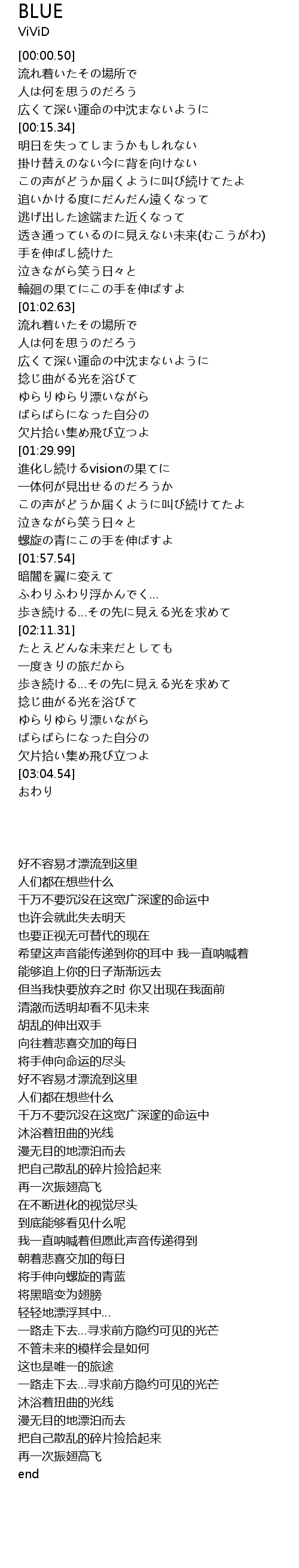 | [00:44.54] | 透き通っているのに見えない未来(むこうがわ) |