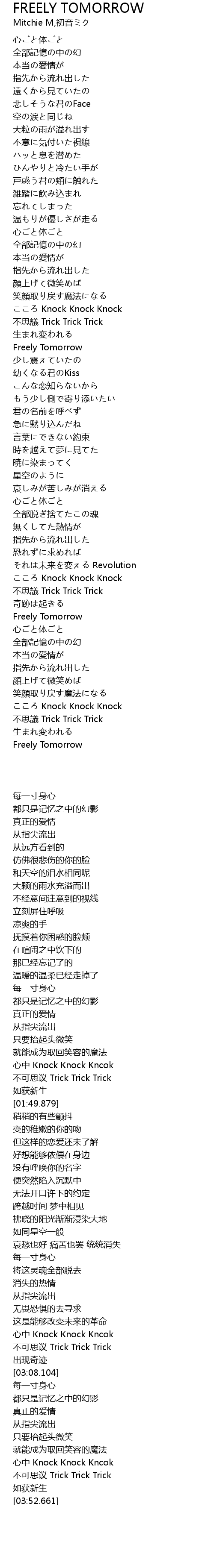 | [01:44.675] | 不思議 Trick Trick Trick |