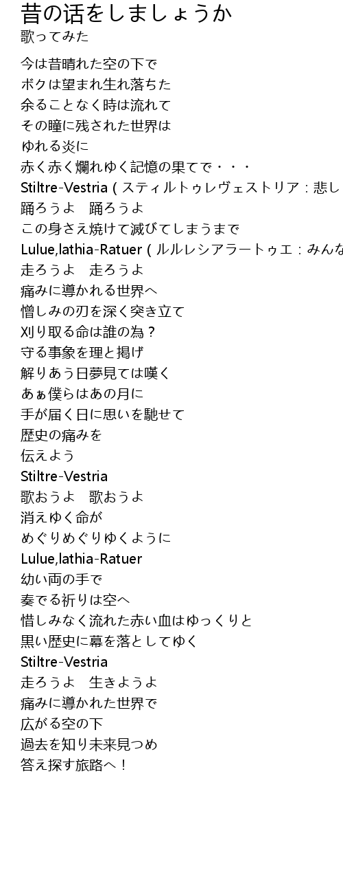 | [00:58.16] | Stiltre-Vestria(スティルトゥレヴェストリア:悲しくても) |