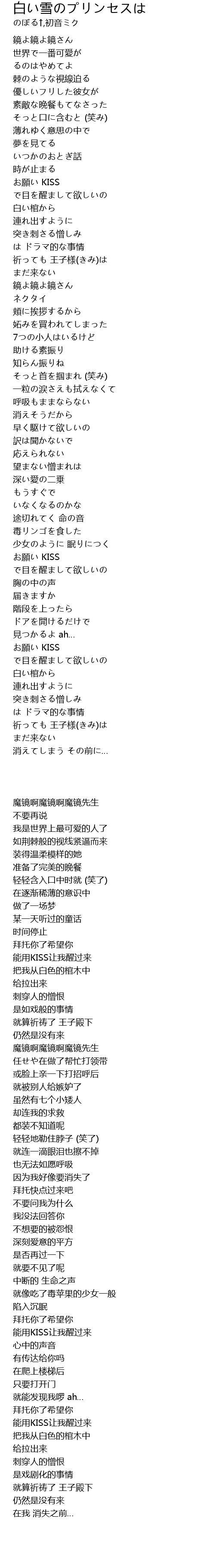 | [01:29.300] | 鏡よ鏡よ鏡さん |