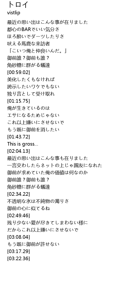 | [01:36.83] | もう既に御前を消したい |