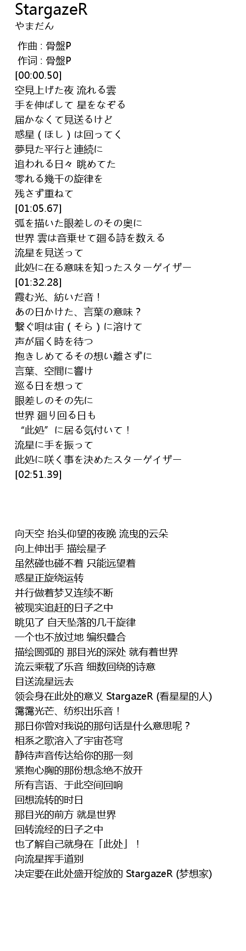 | [01:22.86] | 此処に在る意味を知ったスターゲイザー |