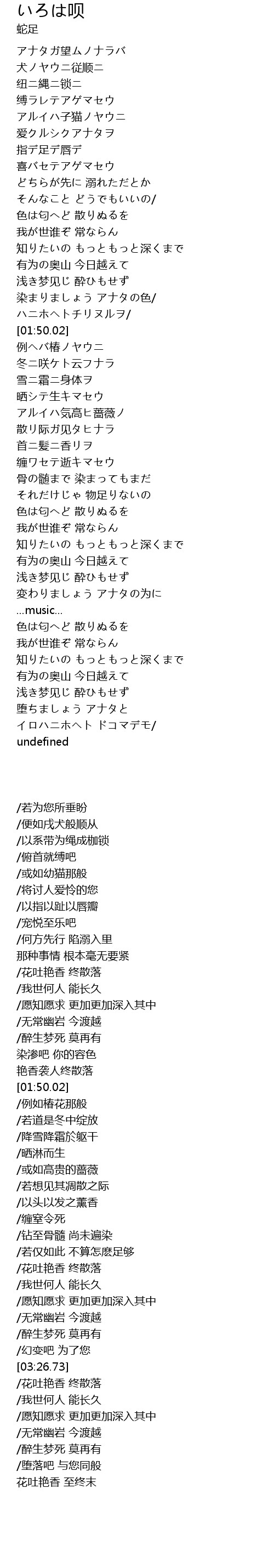 | [04:15.33] | イロハニホヘト ドコマデモ/ |