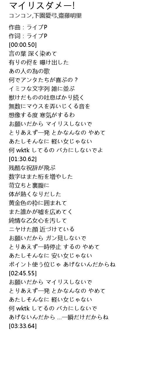 | [03:19.52] | 何 wktk してるの バカにしないで |