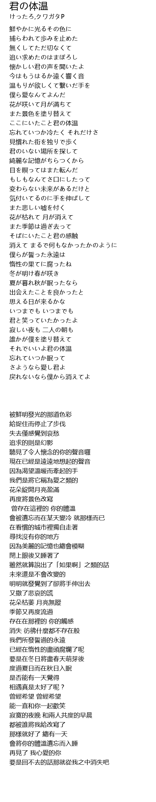 | [00:35.37] | 懐かしい君の声を聞いたよ |