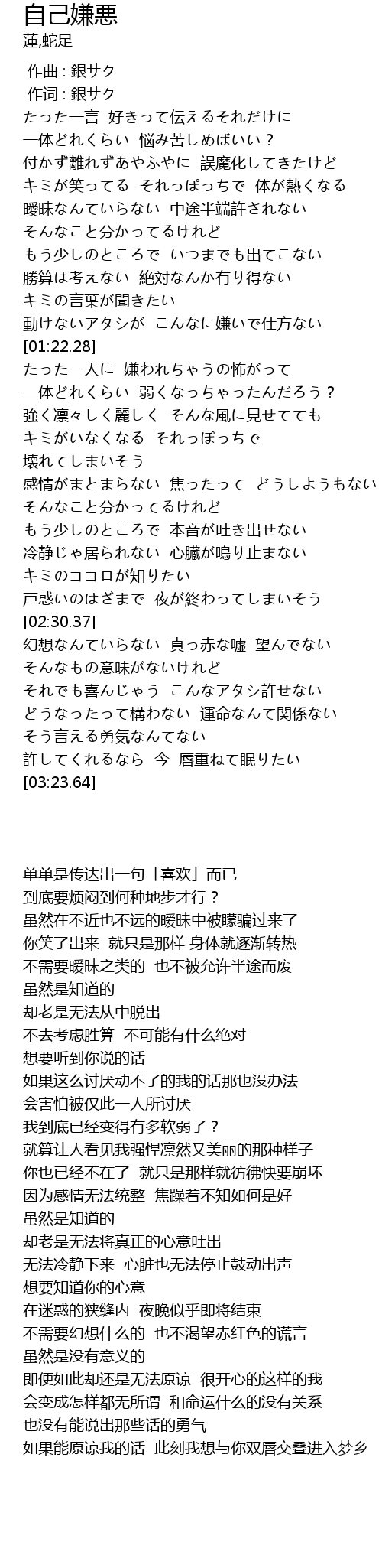 | [03:00.38] | それでも喜んじゃう こんなアタシ許せない |