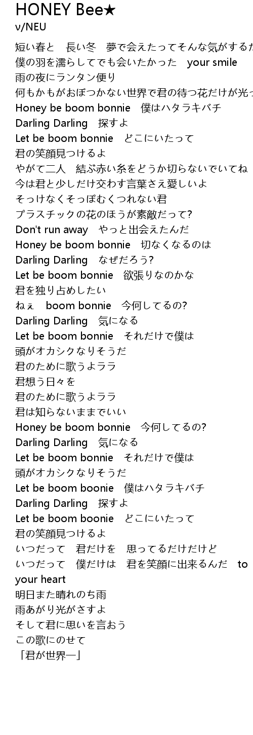 | [03:01.36] | Honey be boom bonnie 今何してるの? |