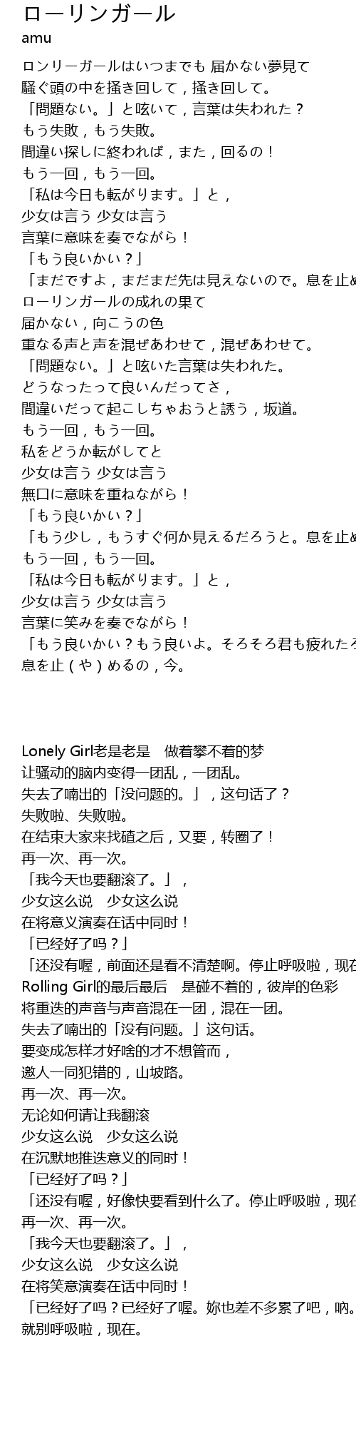 | [01:49.080] | ローリンガールの成れの果て 届かない,向こうの色 |