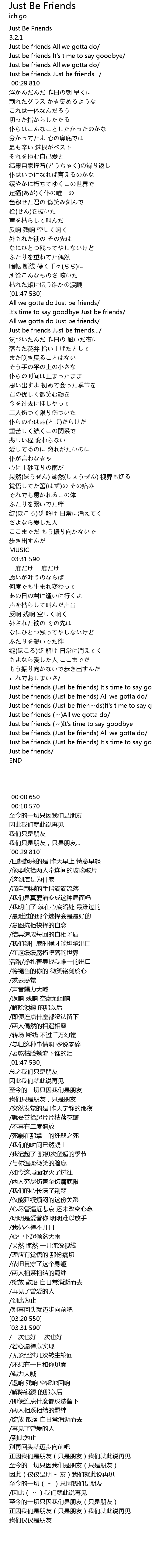 | [04:39.610] | Just be friends (~)It's time to say goodbye |