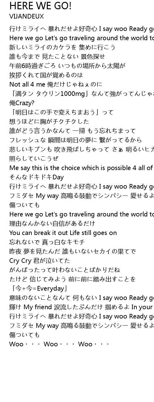 | 行けミライへ 暴れだせよ好奇心 I say woo Ready go | |