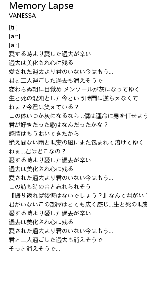 | [01:05.92] | 君が好きだった歌はなんだったかな? |