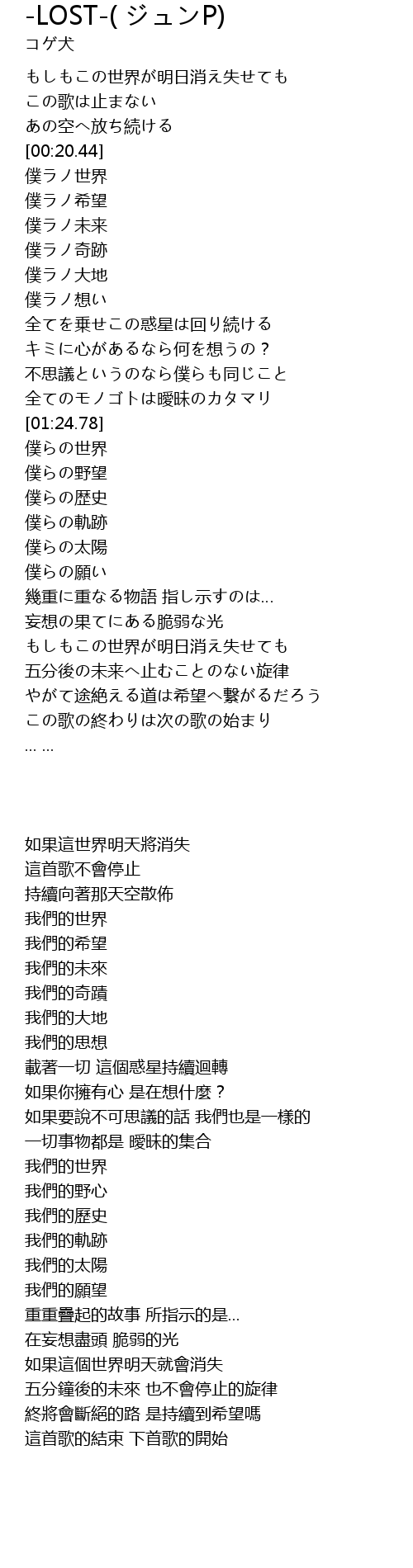 | Song | -LOST-( ジュンP) |