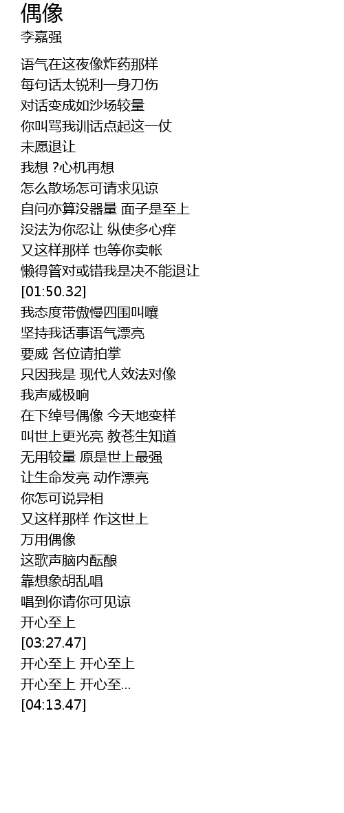 | [02:04.33] | 我态度带傲慢四围叫嚷 |