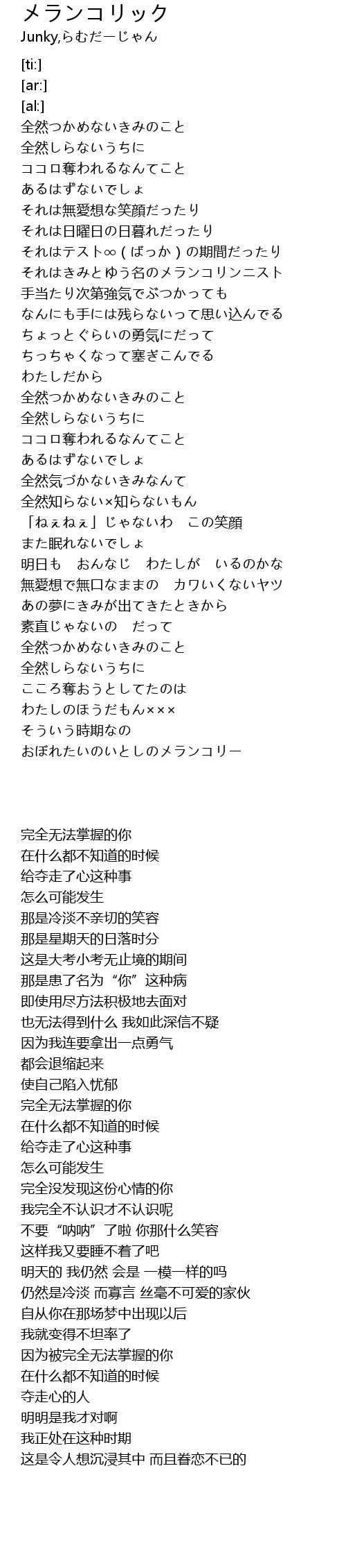 | [00:47.90] | それはきみとゆう名のメランコリンニスト |