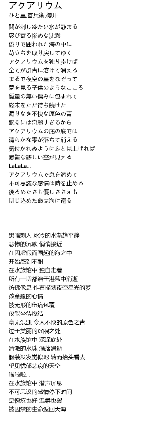 | [00:51.810] | アクアリウムを独り歩けば |