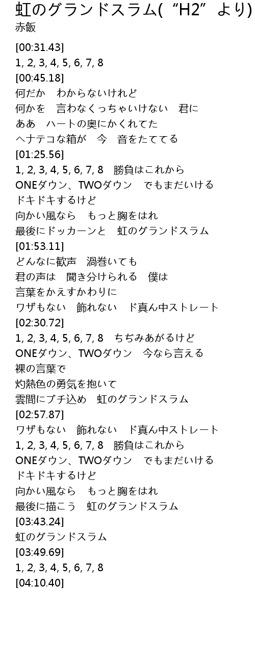 | [03:35.54] | 最後に描こう 虹のグランドスラム |