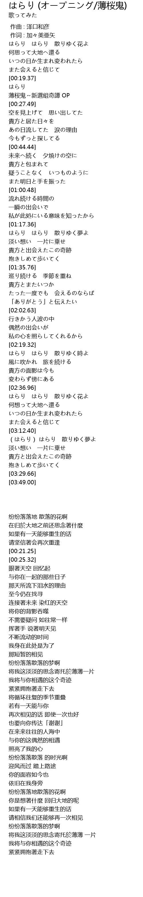 | [02:56.63] | はらり はらり 散りゆく花よ |
