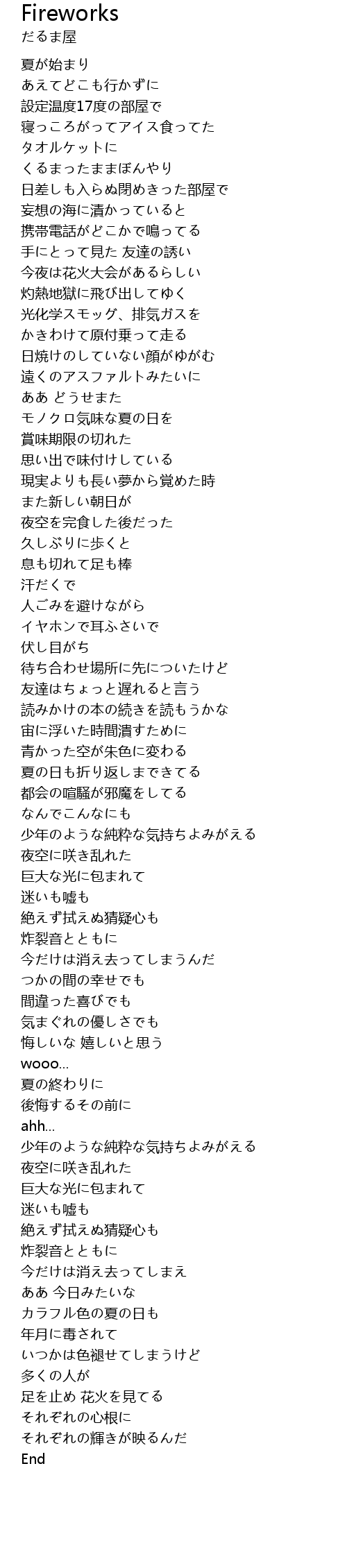| [04:42.73] | 足を止め 花火を見てる |