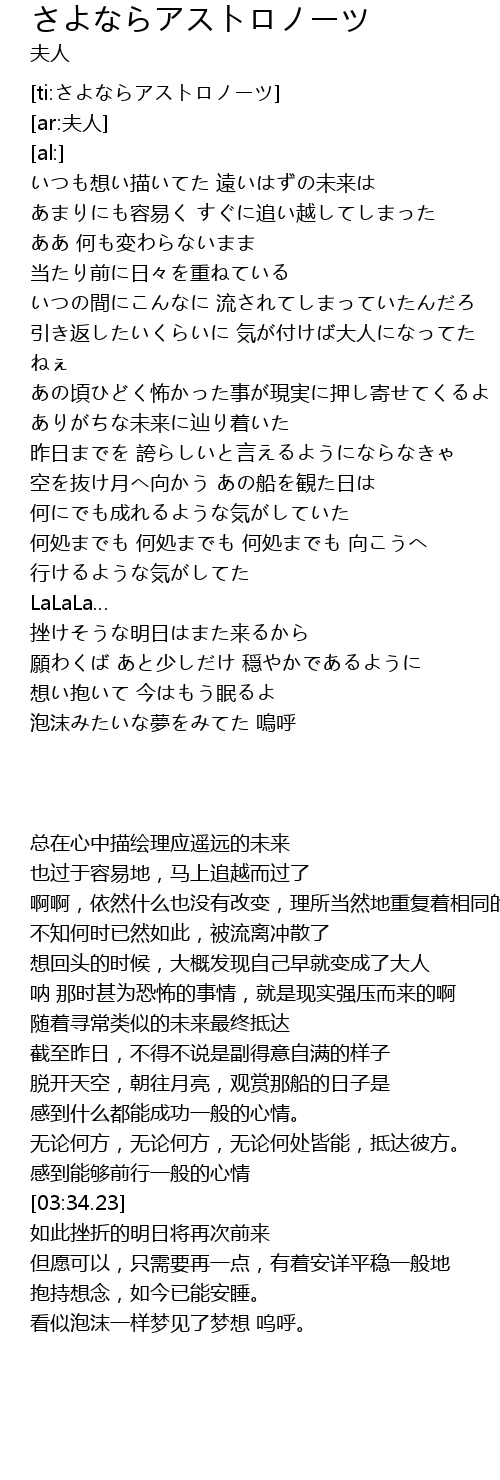 | [03:08.52] | 空を抜け月へ向かう あの船を観た日は |