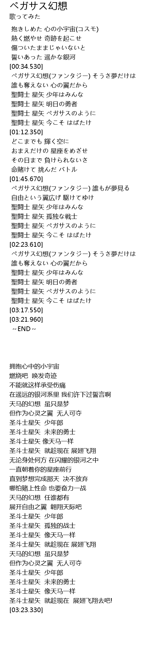 | [02:38.690] | ペガサス幻想(ファンタジー) そうさ夢だけは |