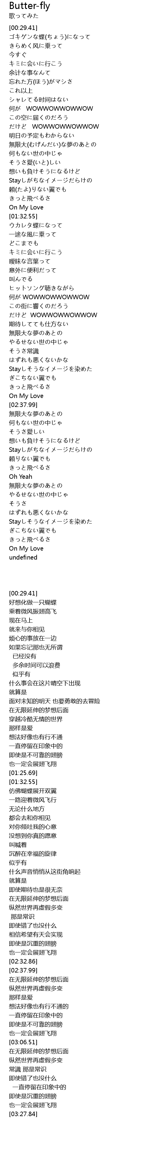| [00:32.03] | ゴキゲンな蝶(ちょう)になって |
