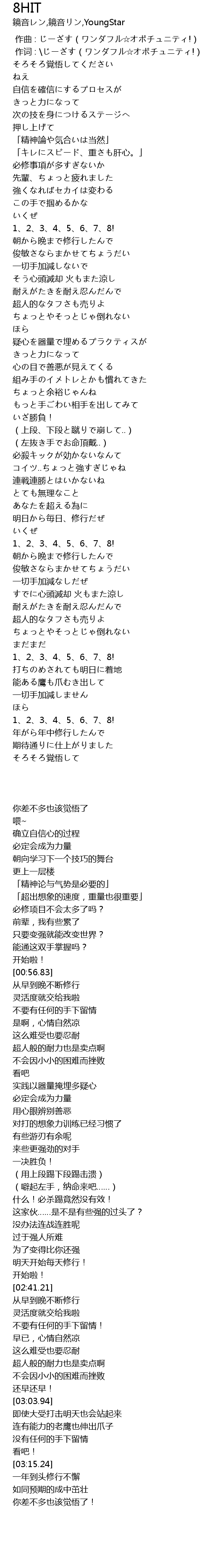 | [02:41.21] | 1、2、3、4、5、6、7、8! |