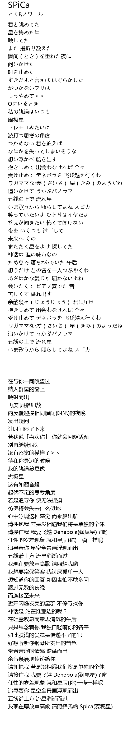 | [03:01.48] | いま歌うから 照らしてよね スピカ |