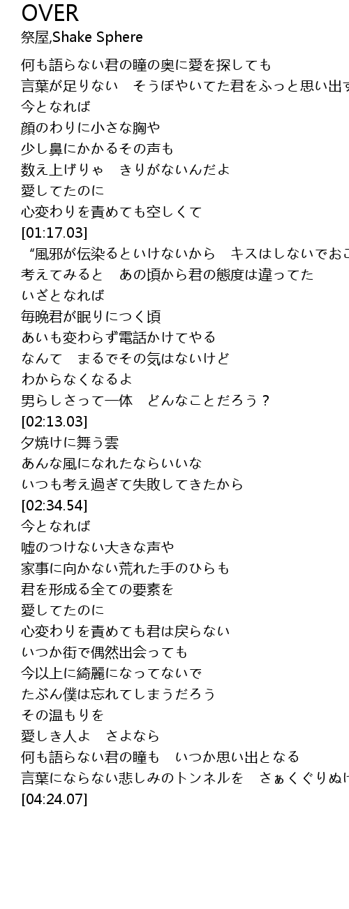 | [04:13.08] | 言葉にならない悲しみのトンネルを さぁくぐりぬけよう |