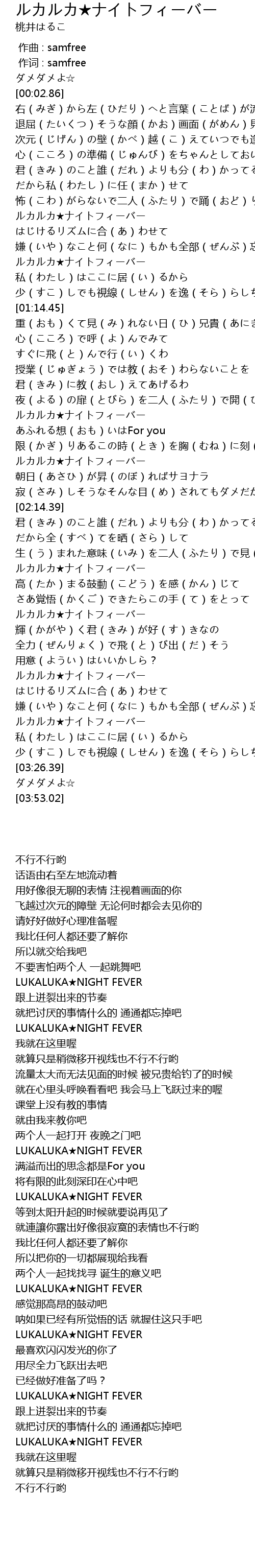 | [03:02.30] | ルカルカ★ナイトフィーバー |