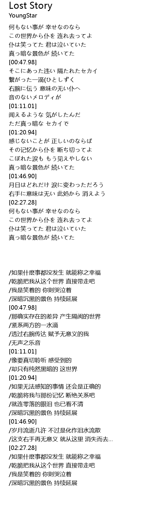 | [00:31.00] | 仆は笑ってた 君は泣いていた |