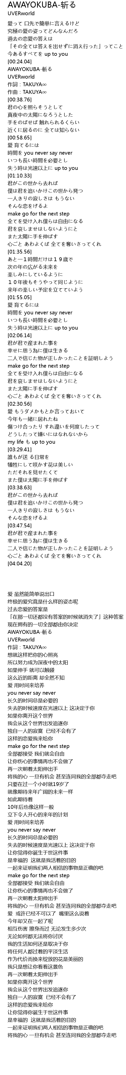 | [00:25.37] | AWAYOKUBA-斬る |