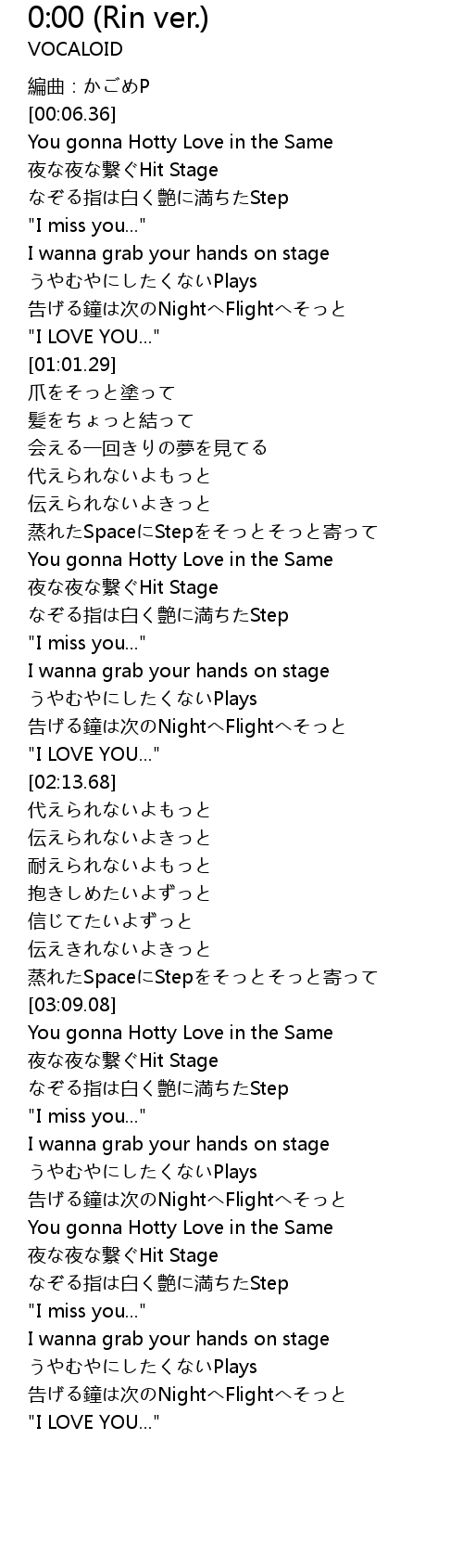 | [03:41.93] | 夜な夜な繋ぐHit Stage |